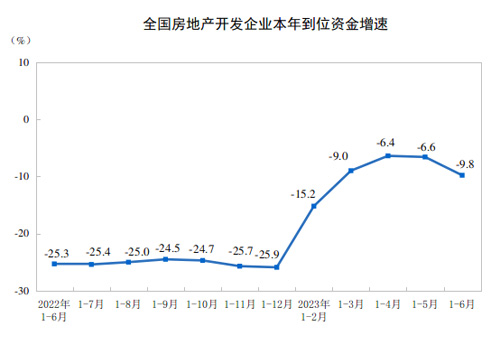 上半年,房地產開發企業房屋施工面積791548萬平方米,同比下降6.6%。其中,住宅施工面積557083萬平方米,下降6.9%。房屋新開工面積49880萬平方米,下降24.3%。其中,住宅新開工面積36340萬平方米,下降24.9%。房屋竣工面積33904萬平方米,增長19.0%。其中,住宅竣工面積24604萬平方米,增長18.5%。