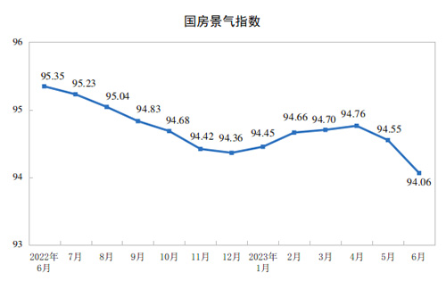 6月份,房地產開發景氣指數(簡稱“國房景氣指數”)為94.06。