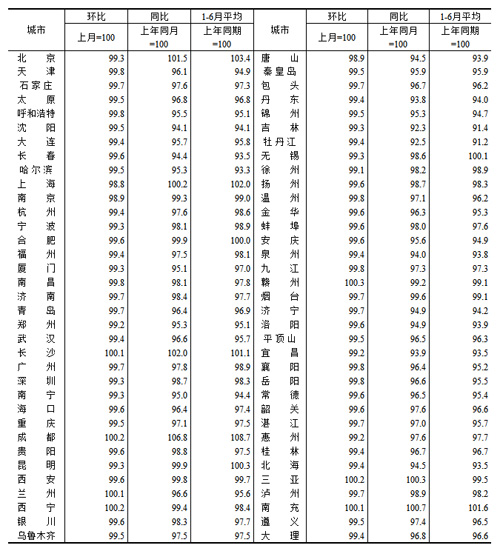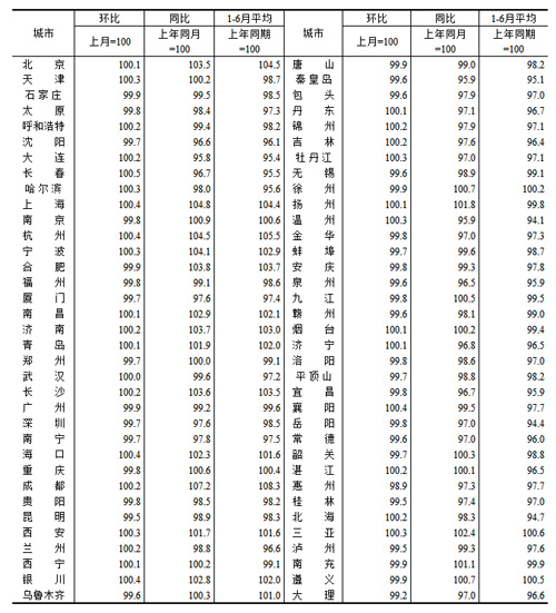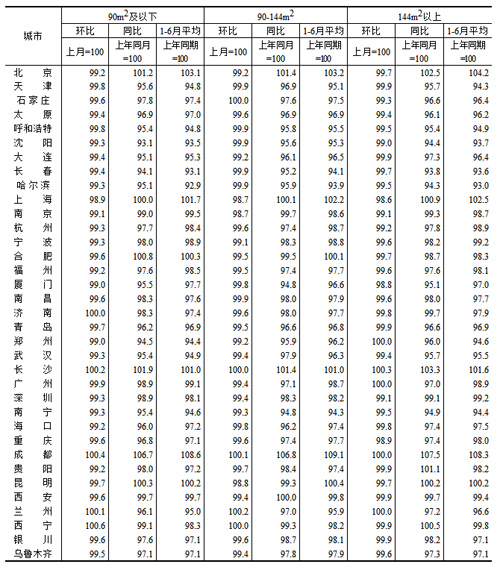 表1:2023年6月70個大中城市新建商品住宅銷售價格指數