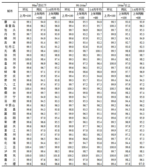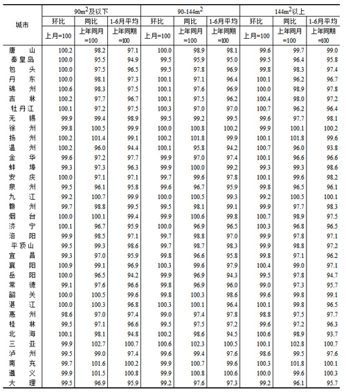 表3:2023年6月70個大中城市新建商品住宅銷售價格分類指數(二)