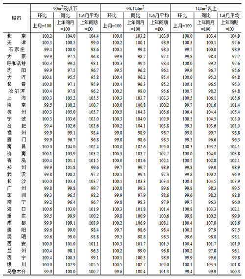 表3:2023年6月70個大中城市新建商品住宅銷售價格分類指數(一)