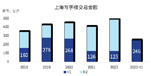 上半年上海寫字樓大宗交易交易金額約為246億元,幾近是2022年同期的兩倍。