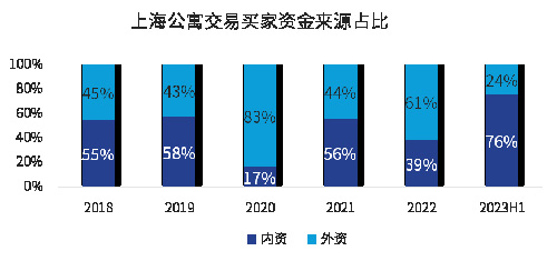 基于買家資金來源的分析,上半年有超過四分之三的公寓交易由內資買家完成,且以機構投資人為主。