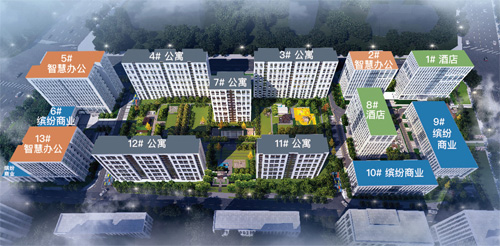 中國鐵建智慧港是一個商務綜合體項目,共由13棟建筑組成,其中包括5棟人才公寓、3棟商務辦公樓、3棟商業樓和2棟酒店,為企業提供了一站式的商務辦公體驗,滿足了各類企業未來發展的需求。
