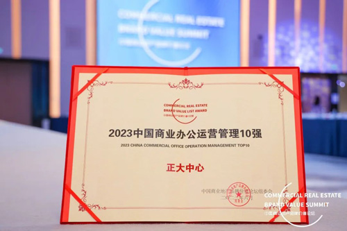 圖注:正大中心榮獲“2023中國商業辦公運營管理10強”證書