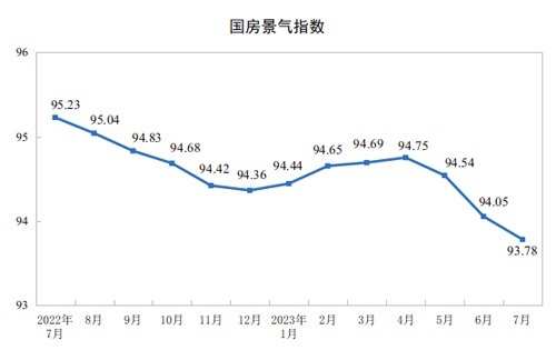 7月份,房地產開發景氣指數(簡稱“國房景氣指數”)為93.78。
