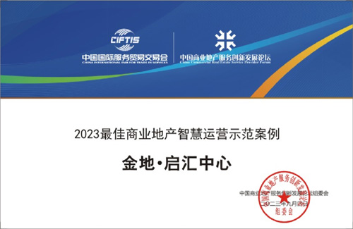 9月4日,在2023年中國國際服務貿易交易會上,作為服貿會商業地產領域的唯一重點論壇——中國商業地產智慧服務論壇首次聚焦智慧服務。活動中,盛邀商業地產智慧服務領域具有領先地位的地產、物業、商業、運營、管理等相關企業代表,共同探討商業地產的智慧服務。金地·啟匯中心作為優秀項目代表受邀參會,并在活動中榮獲“2023最佳商業地產智慧運營示范案例”榮譽。