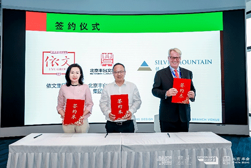 北京豐臺(tái)文化旅游集團(tuán)有限公司總經(jīng)理殷明,銀山集團(tuán)聯(lián)合創(chuàng)始人董事長(zhǎng)莫林澤 (Stefan Matzinger),依文集團(tuán)副總裁、依文中國(guó)手工坊總裁溫巍上臺(tái)簽約。