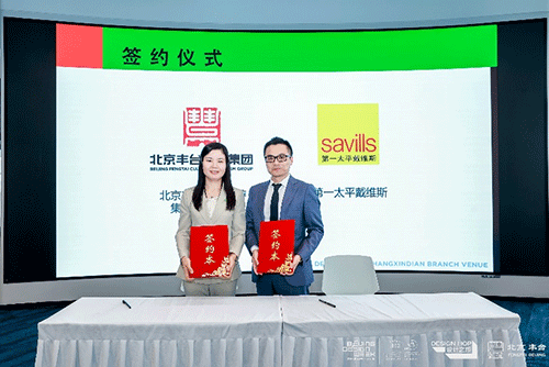 第一太平戴維斯策略顧問部主管、高級(jí)董事朱峰,豐臺(tái)文化旅游集團(tuán)有限公司副總經(jīng)理韓蘭佳女士上臺(tái)簽約。