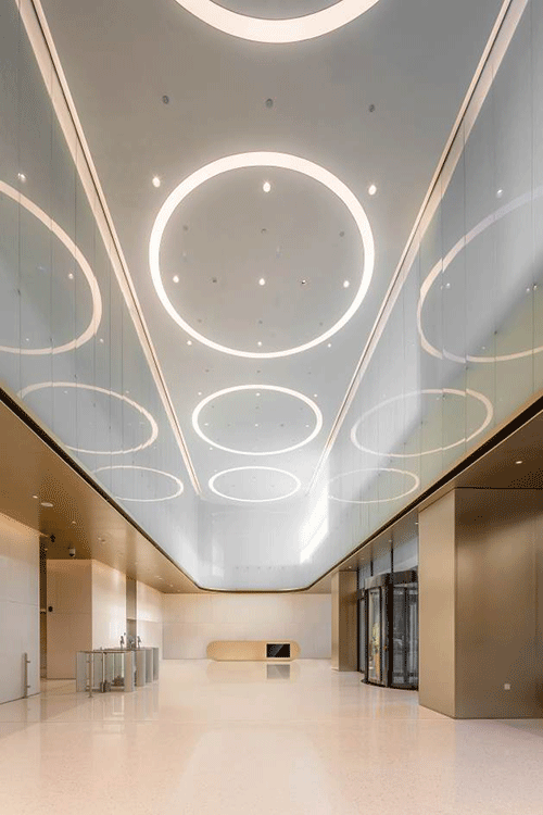 改造后的內部空間,延續了外立面的現代風格,色調溫潤,線條利落。層高超過10米的雙層挑空大堂,在夾絲玻璃和拉絲不銹鋼的包裹下,像一盞點亮CBD的白色中式燈籠;色彩、照明、裝飾、親生物元素等多種細節,營造出溫暖、柔軟、舒適的環境,正向激發拼搏的精神和營造逐浪的氛圍;智能閘機、派梯系統、咖啡廳、美食廣場匹配高端商務辦公及生活需求;商務辦公樣板間同步開放,內部采光和視覺感受優越,外可賞CBD繁華商業景象,內可觀城市綠肺團結湖公園。