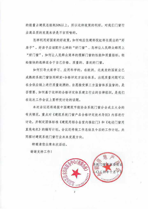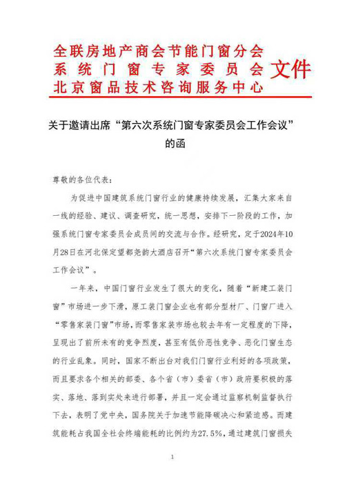 關于邀請出席“第六次系統門窗專家委員會工作會議”