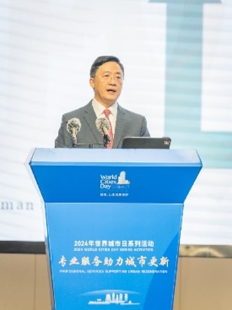 戴德梁行大中華區首席執行官、香港測量師學會前會長兼現任內地事務部副主席趙錦權分享了香港城市更新的經驗和做法。趙錦權提到,香港面臨著“舊改速度遠落后于樓宇老化速度”的現況,并為大家介紹了香港現時城市更新主要通過“兩份指導性文件、兩大城市更新目標及四大市區重建策略”共同完成。趙錦權表示,“世界城市日”已經成為國際社會宣傳城市可持續發展理念,共同探討構建宜居和諧城市,應對城市化帶來的各類挑戰的重要舉措。未來,我們將繼續致力于開展相關課題研究、加強城市更新經驗交流、專業技術咨詢與服務產業導入,助力城市高質量可持續發展。
