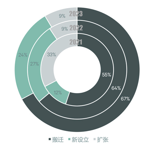 從租賃類型來看,2021-2023年深圳優質寫字樓市場金融板塊的需求過半以上來自搬遷且占比逐年升高。截止至2023年12月,金融板塊的搬遷需求占比已近70%。特別需要指出的是,金融搬遷需求占全市搬遷需求的比例也在逐年升高,需求貢獻份額不斷提高。