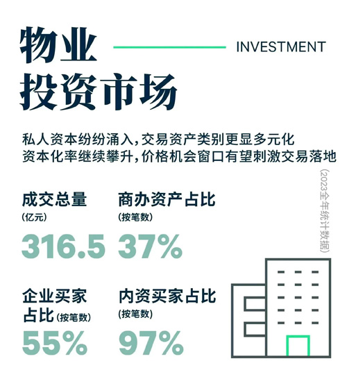 在市場租賃端表現不及預期的大環境下,業主對于各類資產價格正在不斷修正,資本化率四季度繼續上行,買賣雙方價格預期差收窄。隨著資產價格的下調和可售優質資產數量的增多,將吸引更多企業和私人資本配置高性價比的優質資產,而近期也看到險資鎖定核心項目的意愿有所加強。