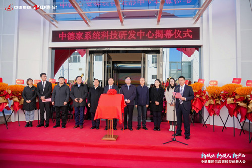 上午,中德家系統科技研發中心舉行揭幕儀式。全聯房地產商會常務副監事長、中國建筑節能協會副會長孟繁軍和中德集團董事長程田青共同為研發中心揭幕。揭幕儀式由中德集團執行總裁張軍主持。