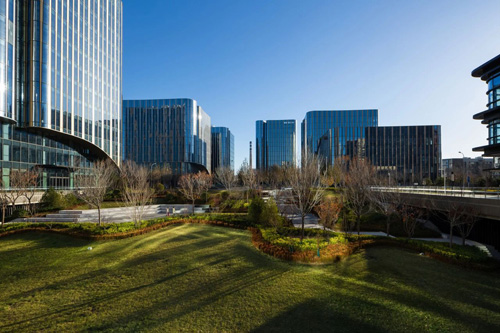 在硬件建設方面,金隅智薈中心總建筑規模約41萬平方米,擁有12棟國際化高品質寫字樓,能夠滿足不同規模科技企業的發展需求。項目由世界頂尖機構凱達環球負責規劃設計,以世界一流水準,打造高標準商務科技空間,充分體現了“融入自然、和諧共生”的綠色創新理念,營造出花園式生態辦公場景,提升了區域的整體辦公載體品質。