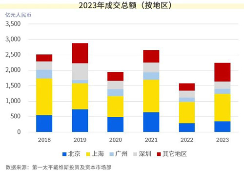 2023年全年,中國大宗投資市場完成交易總額達約人民幣2,239億元,同比上漲逾40%。隨著越來越多的業(yè)主將更多的資產(chǎn)投放市場,價格經(jīng)歷不斷調(diào)整,險資和資金充裕的企業(yè)買家紛紛尋求收購機會,投資市場的情緒在2023年第四季度略有回升。