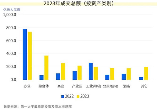 縱觀2023年,商業(yè)、公寓/住宅及酒店交易總額增速位列前三,為更受投資者青睞的資產(chǎn)類別。