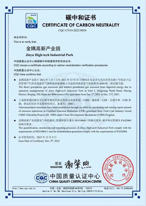 金隅高新產業園此次榮獲2023年度綠色智慧園區示范項目,為行業樹立了綠色低碳智慧標桿。十四五期間,金隅高新產業園積極開展降碳工作,通過實施節能技改措施、智能照明、智慧能源控制模型聯動控制系統等的升級改造和優化管理等措施,降低企業的碳排放,成為市屬國企首個取得碳中和證書的園區,為首都實現綠色低碳、可持續發展貢獻力量。