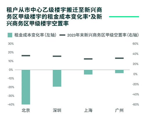 注釋*:租金成本變化率=2021至2023年市中心乙級租金變化率+2023年新興商務區甲級和市中心乙級樓宇租金差,租金為有效租金。