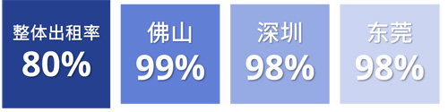 市場整體出租率80%。22個城市的出租率在80%以上;8個城市在90%以上,其中5個位于華南。