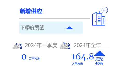 2024年一季度暫無新項目入市。但預計2024全年新增供應量達到164.8萬平方米,為近五年內最高供應。