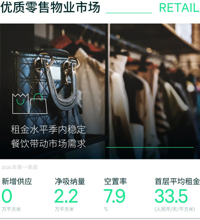 一季度上海零售物業市場未錄得新項目入市,市場活躍度有所放緩。截至季末,全市空置率環比微降0.2個百分點,同比上升0.2個百分點,報7.9%,高于三年空置率平均水平;單季凈吸納量2.2萬平方米,環比下跌84.1%,同比下跌34.1%。租金方面,各級商圈持續分化表現,核心及次級商圈租金穩定,而新興商圈租金延續下行趨勢但跌幅收窄;全市購物中心首層租金環比持平,報每天每平方米人民幣33.5元。