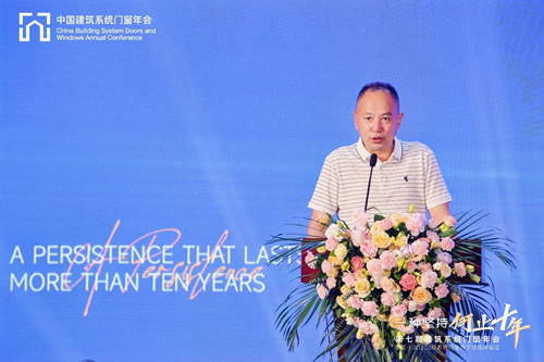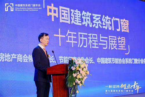 首先,全聯房地產商會節能門窗分會和系統門窗同學交流聯誼會會長、軒尼斯實業有限公司董事長曾慶偉致辭:《中國建筑系統門窗十年歷程與展望》,詳細的回顧了中國建筑系統門窗十年的發展歷程,這十年取得的成績,存在的不足,并展望了系統門窗未來的發展方向。