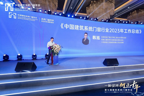 接著,全聯房地產商會節能門窗分會常務會長、大洋家居江蘇股份有限公司總經理韓旭做《中國建筑系統門窗行業2023年工作總結》。