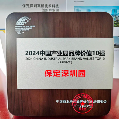 中國商業(yè)地產(chǎn)品牌價(jià)值100強(qiáng)(項(xiàng)目類)頒獎(jiǎng)儀式同期舉行,保定深圳園項(xiàng)目榮膺“2024中國產(chǎn)業(yè)園品牌價(jià)值10強(qiáng)”。