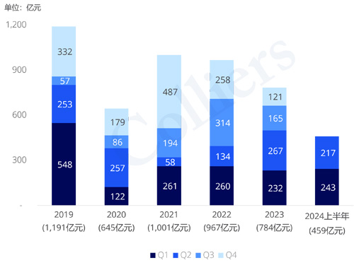 2024年上半年交易金額基本和2023年同期持平,隨著市場不確定性增加,折價資產(chǎn)投資機會增多。
