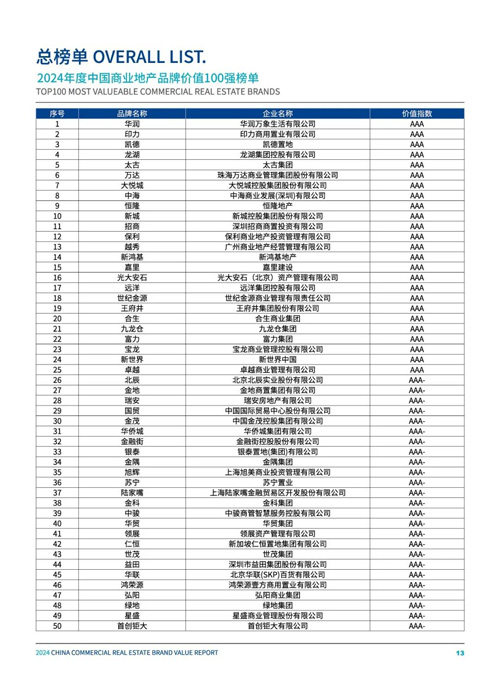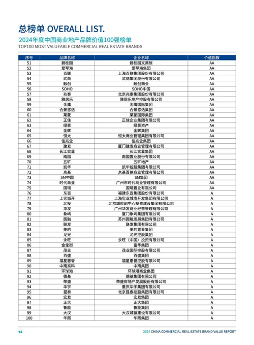 在第六屆中國商業地產品牌價值論壇現場,中國商業地產品牌價值論壇組委會、商業辦公建筑標準委員會向全行業發布了“2024年度中國商業地產品牌價值100強”。