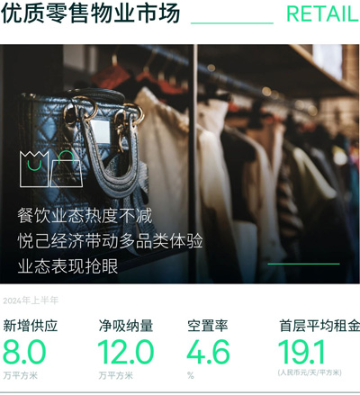 租金方面,消費(fèi)回暖更多帶動的是餐飲和體驗(yàn)類業(yè)態(tài),而零售業(yè)態(tài)表現(xiàn)疲弱導(dǎo)致首層平均租金二季度繼續(xù)環(huán)比下跌0.3%至每天每平方米19.1元。2024上半年下降了0.4%,下降幅度同比變化不大。聚焦項(xiàng)目層面,租金分化持續(xù),位于核心區(qū)知名運(yùn)營商的高品質(zhì)項(xiàng)目的租金穩(wěn)步增長,而空置率較高的老舊項(xiàng)目以及部分租戶組合不理想的項(xiàng)目因經(jīng)營業(yè)績不佳而不斷調(diào)低其租金報(bào)價(jià),此類項(xiàng)目也多位于核心區(qū),并由此導(dǎo)致核心區(qū)的平均租金整體走低。