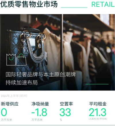 需求方面,本季度市場(chǎng)近需求近四成來自于中餐、各類甜點(diǎn)面包與茶啡店為代表的餐飲品類,期內(nèi)錄得包括柿圓、葉馬、敏華冰廳、FADAJE法大吉面包和WenTinG半糖蛋糕等品牌積極布點(diǎn)。時(shí)尚服飾業(yè)態(tài)占比24%,以輕奢、設(shè)計(jì)師品牌和運(yùn)動(dòng)戶外品類較為活躍。CELINE精品店與Maison Margiela杭州第二家于萬象城揭幕,Tory Burch與ON跑于嘉里中心開業(yè)。此外新能源汽車持續(xù)布局線下渠道,上半年蔚來分別在萬象城、龍湖濱江天街與嘉里中心拓店。而隨著小米SU7正式上市,小米之家汽車體驗(yàn)店,浙江首店在拱墅大悅城正式亮相,門店設(shè)置有車輛產(chǎn)品展廳、3C產(chǎn)品展示和多功能區(qū),實(shí)現(xiàn)了小米“人車家全生態(tài)”的升級(jí)。截至季末,全市空置率小幅上升至3.3%,環(huán)比上升0.2個(gè)百分點(diǎn),同比上升0.6個(gè)百分點(diǎn)。