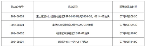 7月8日,上海土地交易市場公告稱,將于7月9日出讓4宗宅地使用權。4宗宅地分別位于寶山區、奉賢區和楊浦區,出讓面積總計15.292811萬平方米,起始總價84.2157億元。