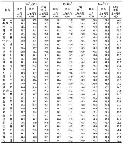 表3:2024年7月70個大中城市新建商品住宅銷售價格分類指數(二)