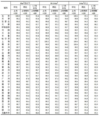 表3:2024年7月70個大中城市新建商品住宅銷售價格分類指數(一)