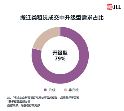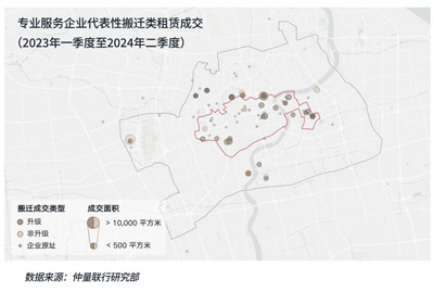 在過(guò)去一年半的甲級(jí)辦公樓搬遷類租賃成交中,升級(jí)型需求占比79%,其中包含乙級(jí)辦公樓租戶向甲級(jí)樓宇項(xiàng)目升級(jí)的需求,同時(shí)也包含樓齡、品質(zhì)差異顯著的項(xiàng)目間的流動(dòng),另有部分租戶正在利用當(dāng)前租金下降的機(jī)會(huì)躍升至超甲級(jí)辦公樓項(xiàng)目。而此類搬遷的核心考量,則在于成本效益和樓宇品質(zhì)之間的“質(zhì)價(jià)比”平衡。從租賃搬遷熱力圖可見,新近竣工項(xiàng)目較為集中的板塊內(nèi)升級(jí)需求較為顯著,同時(shí),部分成熟高品質(zhì)項(xiàng)目,通過(guò)具有競(jìng)爭(zhēng)力的價(jià)格策略同樣獲得升級(jí)型搬遷需求的遷入。
