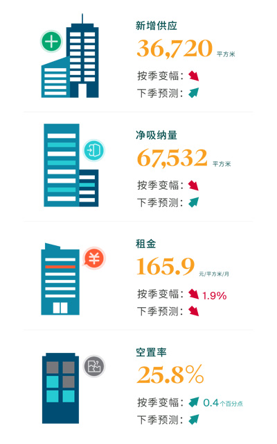 “盡管第二季度是傳統(tǒng)租賃淡季,但消費(fèi)復(fù)蘇開始惠及寫字樓租賃市場,與消費(fèi)側(cè)聯(lián)系密切的制造業(yè)、TMT相關(guān)企業(yè)表現(xiàn)尤為突出。然而,宏觀經(jīng)濟(jì)的復(fù)蘇力度稍遜預(yù)期,消費(fèi)復(fù)蘇的階段性支撐作用或受步伐放緩影響而弱化,從聯(lián)合辦公的持續(xù)擴(kuò)張可反映出企業(yè)對未來租賃環(huán)境持謹(jǐn)慎態(tài)度,降本增效與業(yè)務(wù)擴(kuò)張的市場租賃需求正日益分化。預(yù)估2024年第三季度,雖然租賃活動(dòng)的周期性回暖有望帶動(dòng)全市總體需求呈現(xiàn)溫和上升態(tài)勢,但因該季度內(nèi)有多個(gè)寫字樓項(xiàng)目計(jì)劃入市,全市空置率水平將進(jìn)一步抬升。”