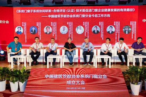隨后,針對中國建筑節能協會系統門窗分會今后工作方向,進行了《系統門窗子系統協同研發+合格評定(認證)技術是促進門窗企業健康發展的有效路徑》的論壇對話,對話由中國建筑節能協會系統門窗分會專家智庫名譽組長、系統門窗專家委員會名譽主任鄧小鷗主持,對話嘉賓有中國建筑節能協會系統門窗分會主任委員、系統門窗專家委員會主任、沈陽樂道建筑科技有限公司總經理胡寶升,中國建筑節能協會系統門窗分會專家智庫組長、系統門窗專家委員會執行主任、泰諾風保泰(蘇州)隔熱材料有限公司總工程師劉軍,中國建筑節能協會系統門窗分會副主任委員、山東雷德數控機械股份有限公司董事長張愛民,中國建筑節能協會系統門窗分會副主任委員、系統門窗專家委員會常務主任、大連實德科技發展有限公司總經理程先勝,中國建筑節能協會系統門窗分會副主任委員、山東佰億緣門窗有限公司董事長侯勝磊,中國建筑節能協會系統門窗分會專家智庫副組長、系統門窗專家委員會副主任、深圳好博窗控技術有限公司產品中心總經理、技術總工劉治國,中國建筑節能協會系統門窗分會專家智庫成員、系統門窗專家委員會副秘書長、凱米特新材料科技有限公司常務副總經理歐群林。