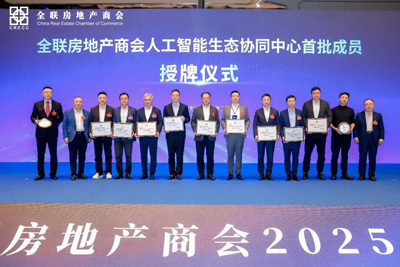 為匯聚行業智慧、搭建跨領域AI協同平臺,商會成立"全聯房地產商會人工智能生態協同中心"。協同中心于9月28日正式揭牌,年會上進行了首批成員單位與服務團隊的授牌儀式。協同中心由廣聯達任主任單位,中國金茂、五礦地產、大漢集團、天鴻控股、遠洋集團、富力地產、澤信控股、米蘭之窗、潤實置業等任副主任單位;平臺服務團隊由趙正挺擔任執行主任,武曉明擔任秘書長。未來中心將在跨領域AI協同方面有效開展工作,為會員搭建專業化的人工智能生態服務鏈。