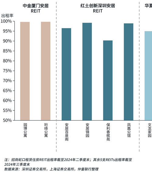 自上市以來,保障性租賃住房公募REITs因其底層項目較強的抗經濟周期屬性及穩健的收益表現而備受投資者的追捧。根據目前已披露的最新保租房REITs財報顯示,已上市的6支租賃住房公募REITs的底層項目經營表現穩健,出租率均維持在90%以上的水平, 資產強抗周期性的特征明顯。