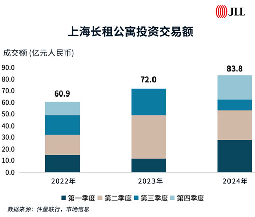 以上海為例,作為長租公寓投資最活躍的城市之一,近年來上海的長租公寓市場呈現出蓬勃的發展態勢。從2022年至2024年,上海連續三年創造交易活躍度新高,共計成交了46單長租公寓項目,投資交易額累計近220億元人民幣,實現了17.3%的復合增長率。這一數據充分說明了上海長租公寓市場的活力和潛力。