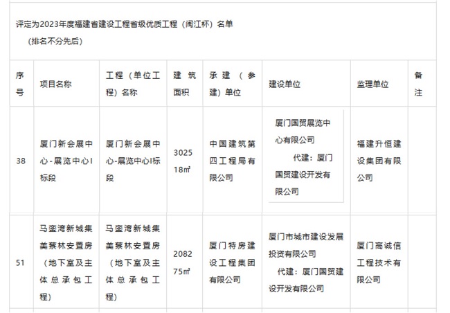 《2023年度福建省建設工程省級優質工程(閩江杯)》部分名單截圖