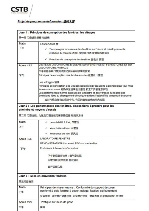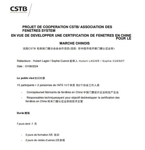 PROJET DE COOPERATION CSTB/ ASSOCIATION DES FENETRES SYSTEM