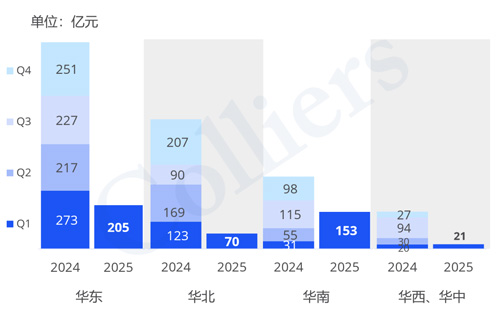 2025年第一季度全國各區(qū)域商業(yè)地產大宗成交金額