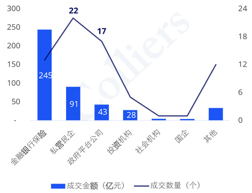從成交數量分析,私營民企的投資意愿明顯,雖然投資金額不及傳統(tǒng)金融業(yè),但是數量上高于;同時多地地方政府平臺公司收購多起當地優(yōu)質房地產項目,如青島國資收購青島世貿52+項目,虹口國資法拍收購虹口商場項目