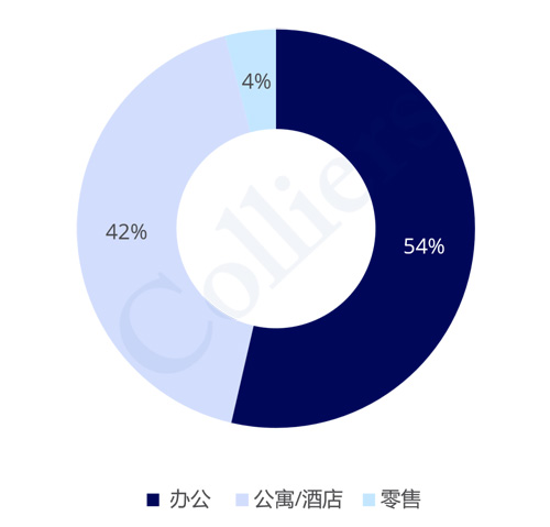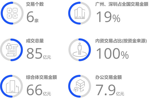 辦公和零售占比接近,主要交易有越秀海珠灣F6棟出售,奧園廣場負一層超市項目出售等交易