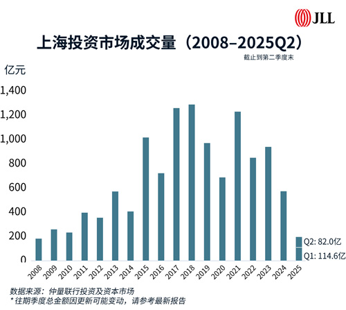 近日,仲量聯行發布2025年第二季度上海商業地產投資市場報告。二季度,上海商業地產市場共錄得23宗資產交易,總成交金額達82億元人民幣,交易活躍度方面,成交宗數環比小幅回落4%。