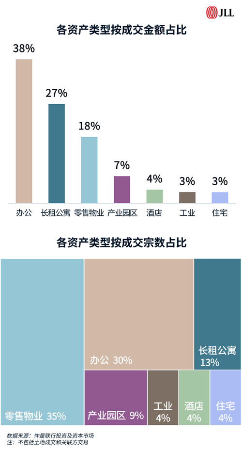 二季度,上海商業地產資本市場呈現多元化投資趨勢。從成交金額而言,辦公資產以38%的占比居于首位;長租公寓及零售物業板塊表現亮眼,值得注意的是,零售物業以35%的成交宗數占比成為二季度最活躍的板塊之一。整體來看,總價1-3億元、交易周期短的小型商業資產尤其受到市場青睞,反映出投資者對消費復蘇預期的持續強化。